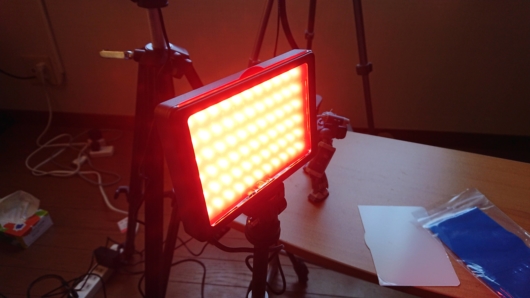 3回目の購入となった照明ですが、今度はリング型照明ではなく四角で三脚付き、おまけに二個セットです。