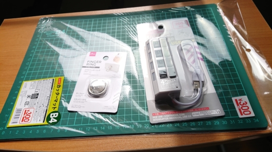 プラモデル作りには欠かせない『工作マット』に照明の給電目的で購入した『USBハブ』それとiPodに付けようと『フィンガーリング』を買ってきました。