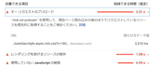 よくわかりませんが、一番点数を下げている項目の改善点みたいです。