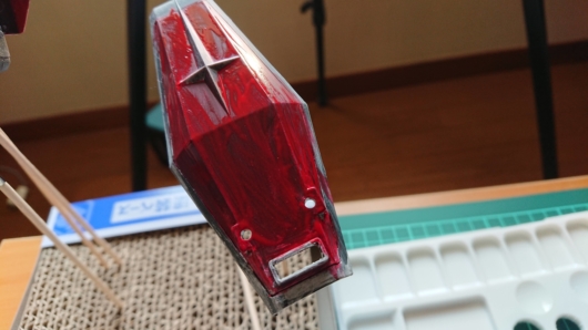 実験でシールドだけ塗ってみます。このシールドはヤスリ掛けもしていないのでボディよりはツルツルです。