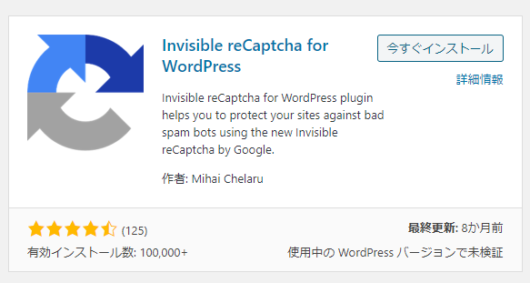 Googleの『reCAPTCA』で『キー』を手に入れ『Invisible reCaptcha』というプラグインをインストールして、先ほど手に入れた『キー』を入力。