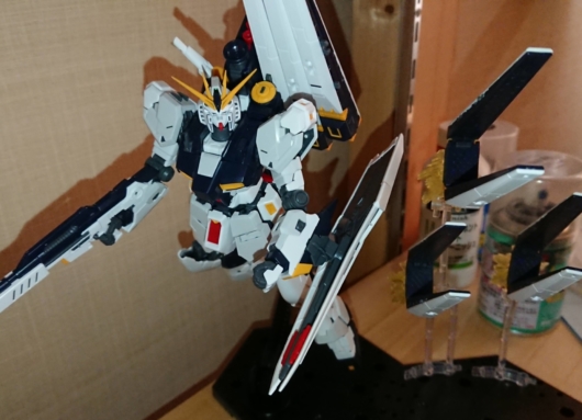 説明書通りだと本体ができてから武器作ってファンネルです。