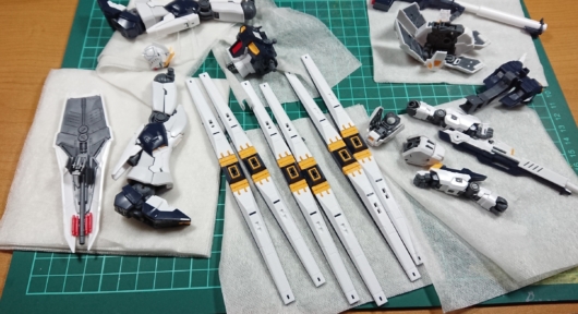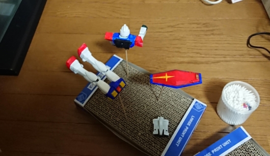 洗ったニューガンダムも全然乾かないのし、墨入れしてもにじんでしまい今回はもう少し放置して乾燥させることにしました。