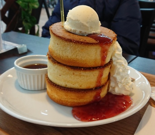 ヤマダ電機内にあったカフェで食べたパンケーキもとても魅力的なおいしさでした。