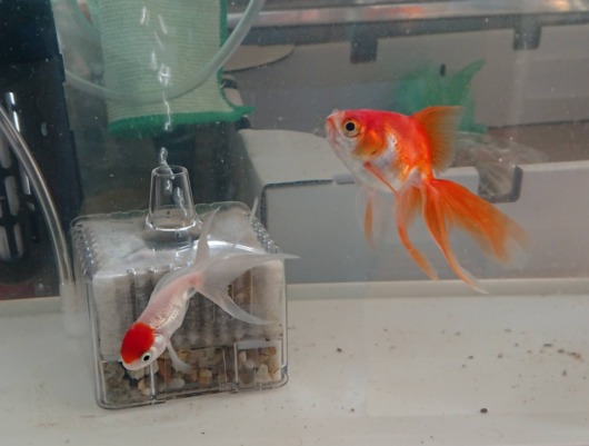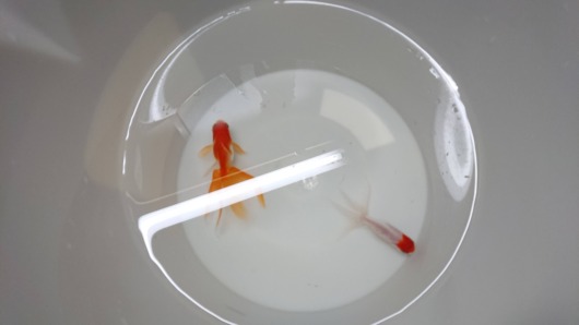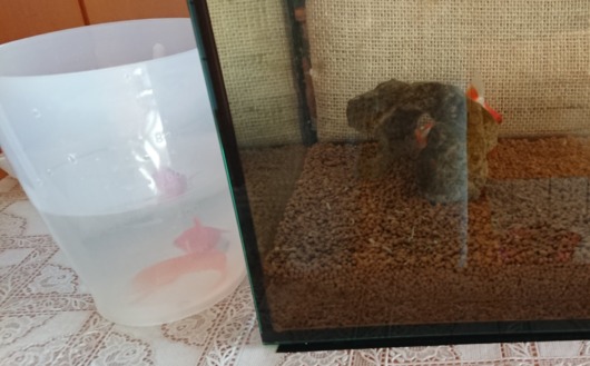 今までいた水槽と、これから行く水槽の温度差は2度ほど、大丈夫でしょう