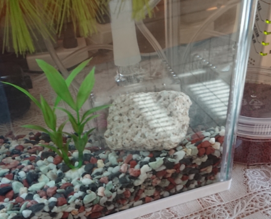 金魚水槽が生臭いのでバクテリアの宿った石を水槽に入れてみました