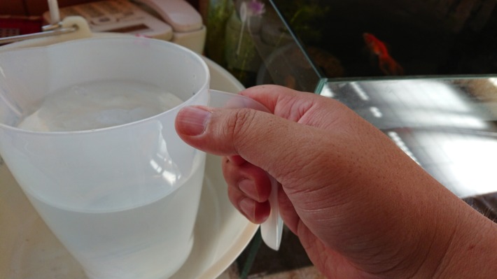 水をいれるときは、百均で買ってきた大きい計量カップにたっぷり水をいれて