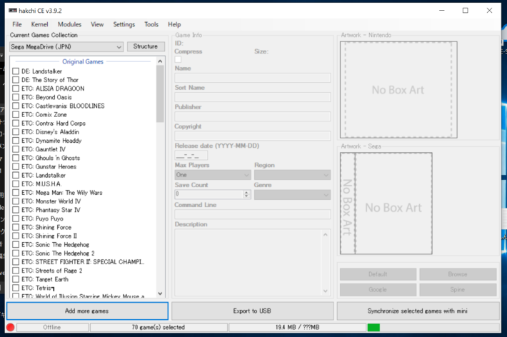大画面でファミコンやゲームギアやゲームボーイがやりたいんで、改造したメガドライブミニに吸い出したソフトを入れてみます。