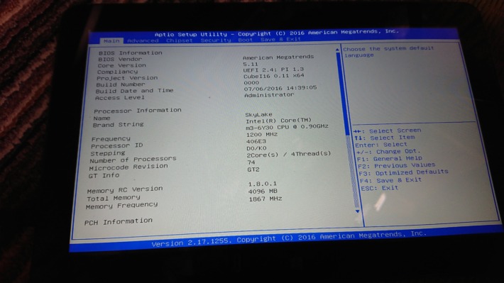 起動する前に電源ボタンと音量アップの長押しでBIOS画面にいけました。