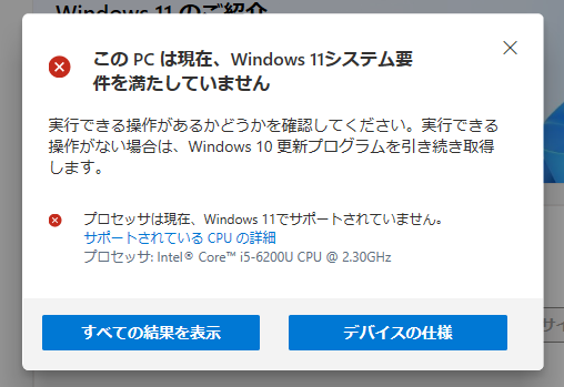 体験版Windows11ではプロセッサのコアのコア数とかで制限をきつくしたり緩くしたりしていたようですが、製品版ではプロセッサの世代で制限をつけたようです。