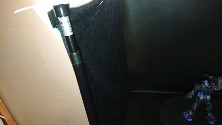 撮影ボックスが安い樹脂のようなプラスチックで、ゆがんでしまっていたので突っ張り棒で補強