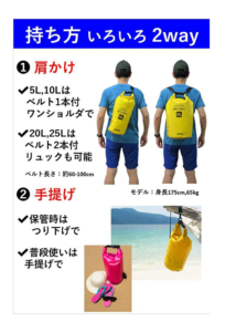 5Lサイズが余裕ですっぽり入る20Lにしておきました。5Lサイズの小さいのは、濡れたパンツとかを入れることにします。